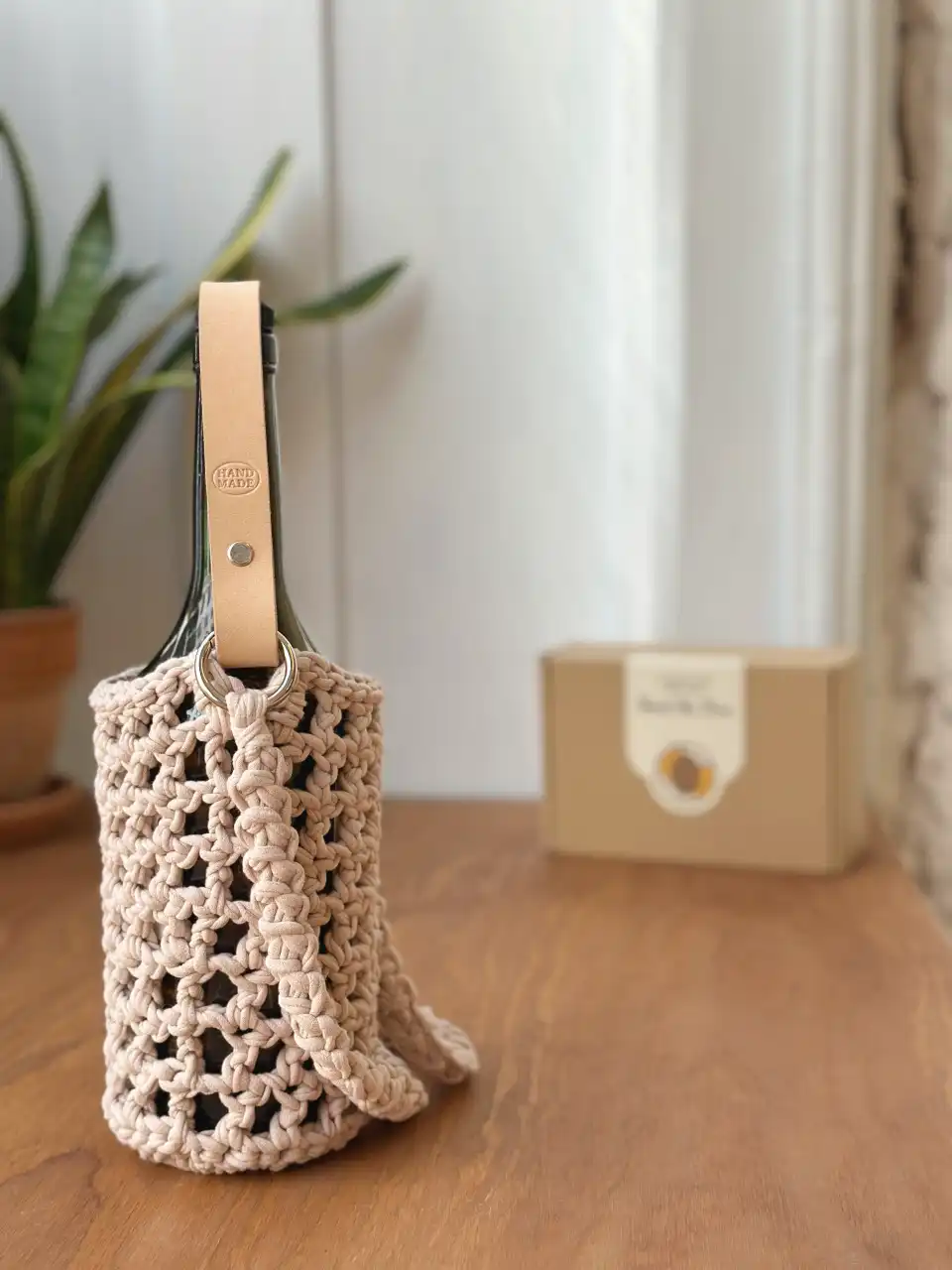 Minimalistický, elegantní a praktický! Nosič na víno, který můžeš nosit přes rameno, nebo v ruce za kožené poutko. Na vinobraní, piknik, nebo jako dárek.