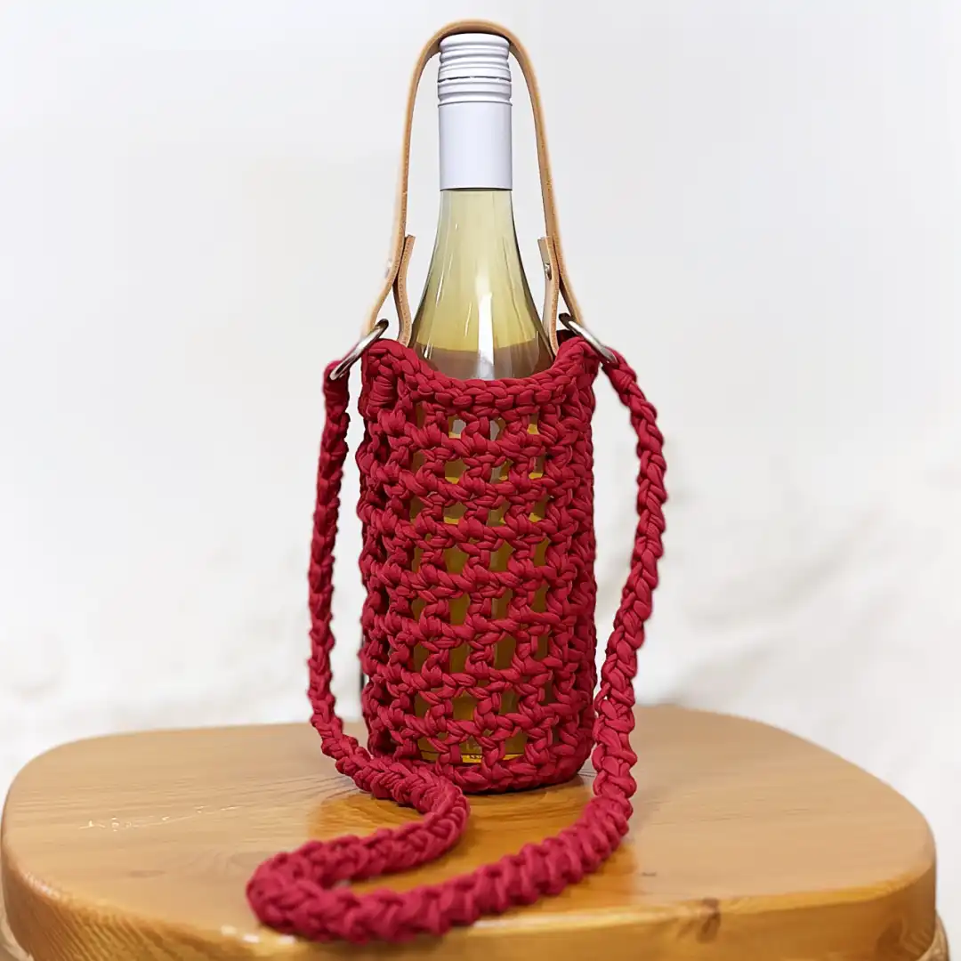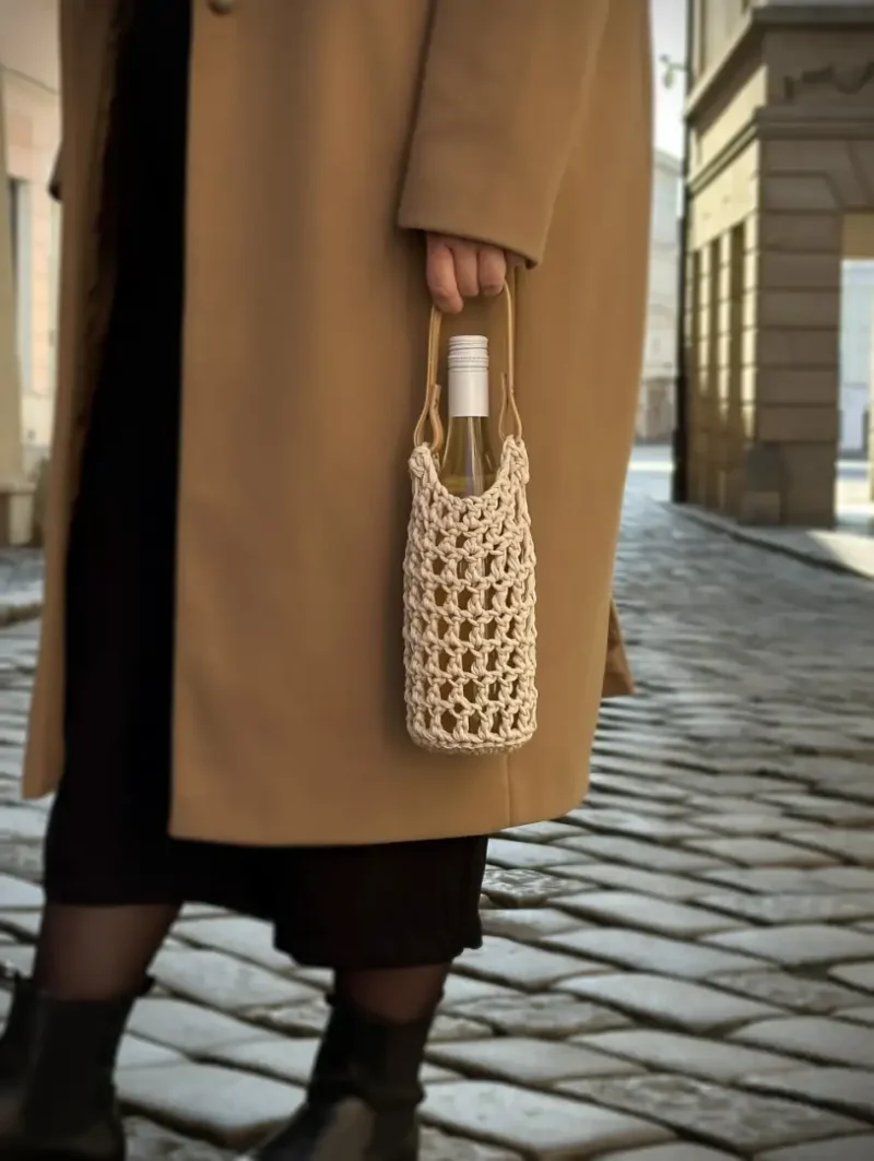 háčkovaný nosič na víno podle návodu na háčkování a pomocí DIY sady na tvoření